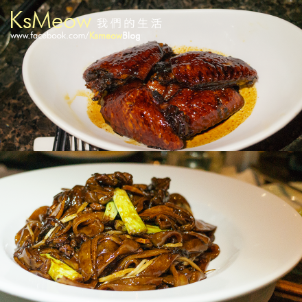 以秘製來佬汁烹調的雞翼及炒牛河 |
