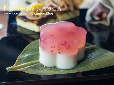 像櫻花的梅子果凍,入口冰涼, 但味道最淡,在甜點中,先吃這款會較好;